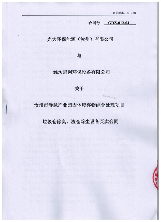 汝州市靜脈產(chǎn)業(yè)園固體廢棄物綜合處理項(xiàng)目,垃圾倉(cāng)除臭、渣倉(cāng)除塵設(shè)備買(mǎi)賣(mài)合同
