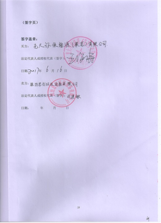 Everbright environmental protection Laiwu environmental protection energy power generation project, sales contract of biogas in furnace equipment